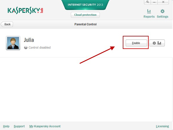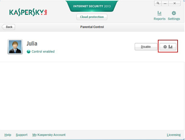 Kaspersky Internet Security 2013 үндсэн цонхыг нээнэ Үндсэн цонх дээрхи Parental Control-г дарна