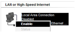 - “Manage network connection”-гэж ороод “Local area connection” дээр хулганы заагчийг байршуулж баруун товчийг товшиж “Enable” командыг сонгоно уу!